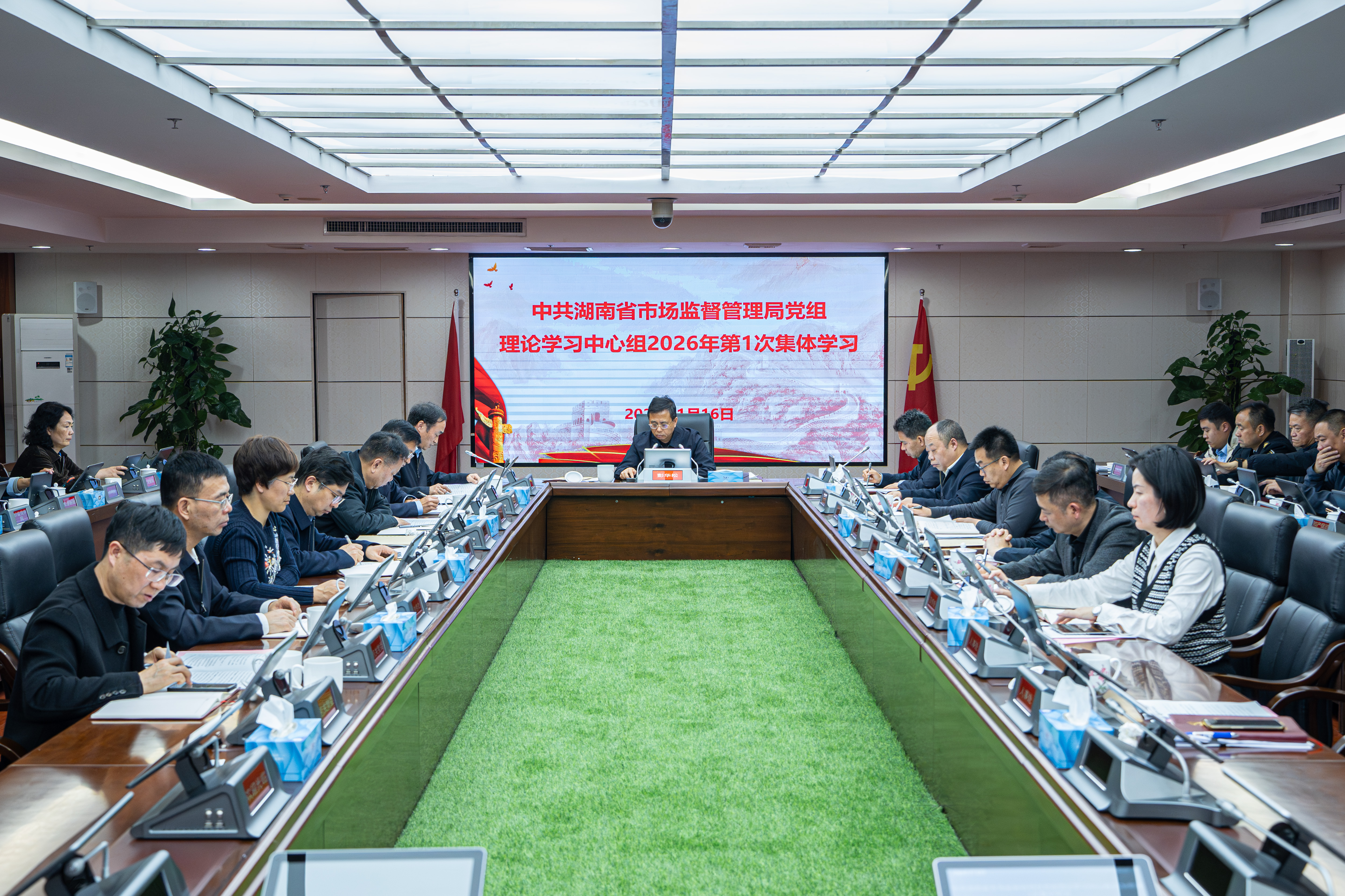 1月16日,省市場監管局黨組理論學習中心組開展2026年第1次集體(擴大)學習,深入學習領會習近平總書記關于黨的建設的重要思想、關于黨的自我革命的重要思想以及關于加強黨的紀律建設、作風建設的重要論述,傳達學習全國市場監管工作會議和省委十二屆十次全會暨省委經濟工作會議精神,為開好省局領導班子民主生活會打牢思想基礎。省局黨組書記、局長彭華松主持并講話。 會議指出,要鑄牢忠誠之魂,以理論清醒保持政治堅定。要深學細悟黨的創新理論,自覺做黨的創新理論的堅定信仰者和實踐者,切實把學習成果轉化為推動市場監管事業發展的實際成效;把準政治建設核心要求,始終把政治建設擺在首位,深刻領悟“兩個確立”的決定性意義、堅決做到“兩個維護”;深入推進基層黨的建設,統籌推進基層黨組織建設,推動黨建與業務深度融合,讓基層黨組織成為推動市場監管長遠發展的堅強堡壘,通過系統學習筑牢思想根基,為民主生活會查擺問題、開展批評奠定堅實的思想基礎。 會議強調,要勇于自我革命,以嚴的基調抓好作風建設,堅定不移正風肅紀反腐,深化以案為鑒、以案促改、以案促治,重點抓好“學查改”閉環落實。要以“學”明規,重點學習整治形式主義、官僚主義的具體要求,深刻反思在履職盡責中的作風短板,找準問題靶向;以“查”正骨,圍繞“上級點、群眾提、互相找、自己查”的立體化查擺體系,對照反面典型案例,從思想上、作風上深刻查擺自身存在的差距不足,深入排查市場監管領域的作風頑疾;以“改”促效,堅持“當下改”與“長久立”相統一,對查擺出的問題分類施策、靶向整改。 會議指出,要聚焦中心大局,以高效監管護航“十五五”開局。要服務“三個高地”建設,加快構建高水平質量基礎設施,強化知識產權和商業秘密保護,深度融入全國統一大市場建設;堅決守牢安全底線,貫徹全國市場監管工作會議“加快提高‘三品一特’全鏈條監管能力”的部署;持續深化改革創新,順應數字化發展趨勢,加快推進智慧監管,提升非現場、穿透式監管能力;樹立和踐行正確政績觀,堅持“為人民出政績、以實干出政績”。 會議強調,要強化擔當作為,以此次學習和民主生活會為契機,進一步壓實責任、提升本領、凝聚合力,以過硬作風保障任務落地。要壓實責任鏈條,各級黨組織要落實作風建設政治責任,嚴負其責、嚴管所轄,班子成員要履行好“一崗雙責”,各處室負責人要當好“第一責任人”;圍繞新時代市場監管工作要求,加強干部隊伍專業化建設,提升履職本領;牢固樹立全省系統“一盤棋”思想,加強處室之間、省市縣之間的協同配合,凝聚共治合力。 省局領導向延華、歐陽志剛、鄧志華、吳峰、雷光明作中心發言。省局黨組理論學習中心組成員,二級巡視員,駐局紀檢監察組副組長,機關處室、直屬單位主要負責人參加會議。(供稿:機關黨委 趙春雨 圖/鄧宇雄)