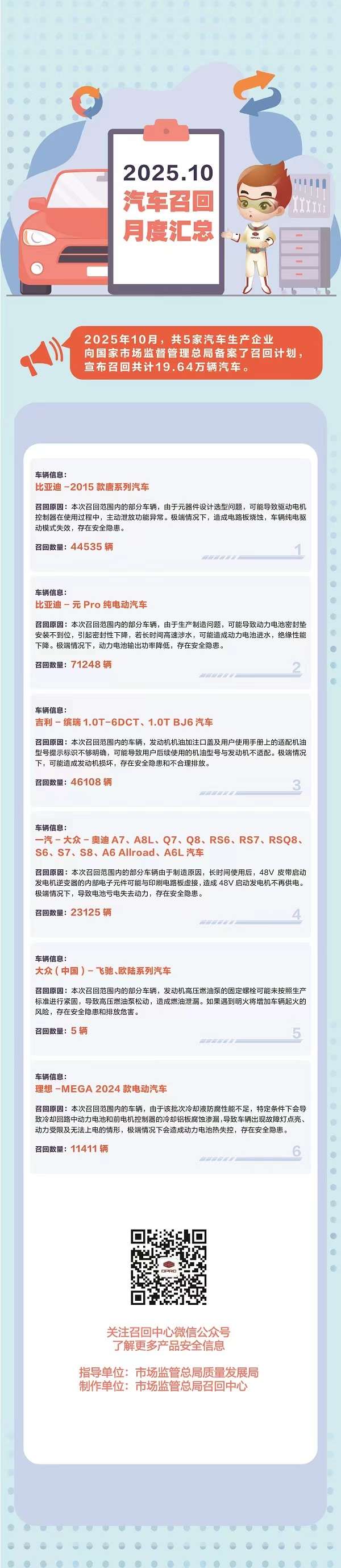2025年10月汽車召回月度匯總