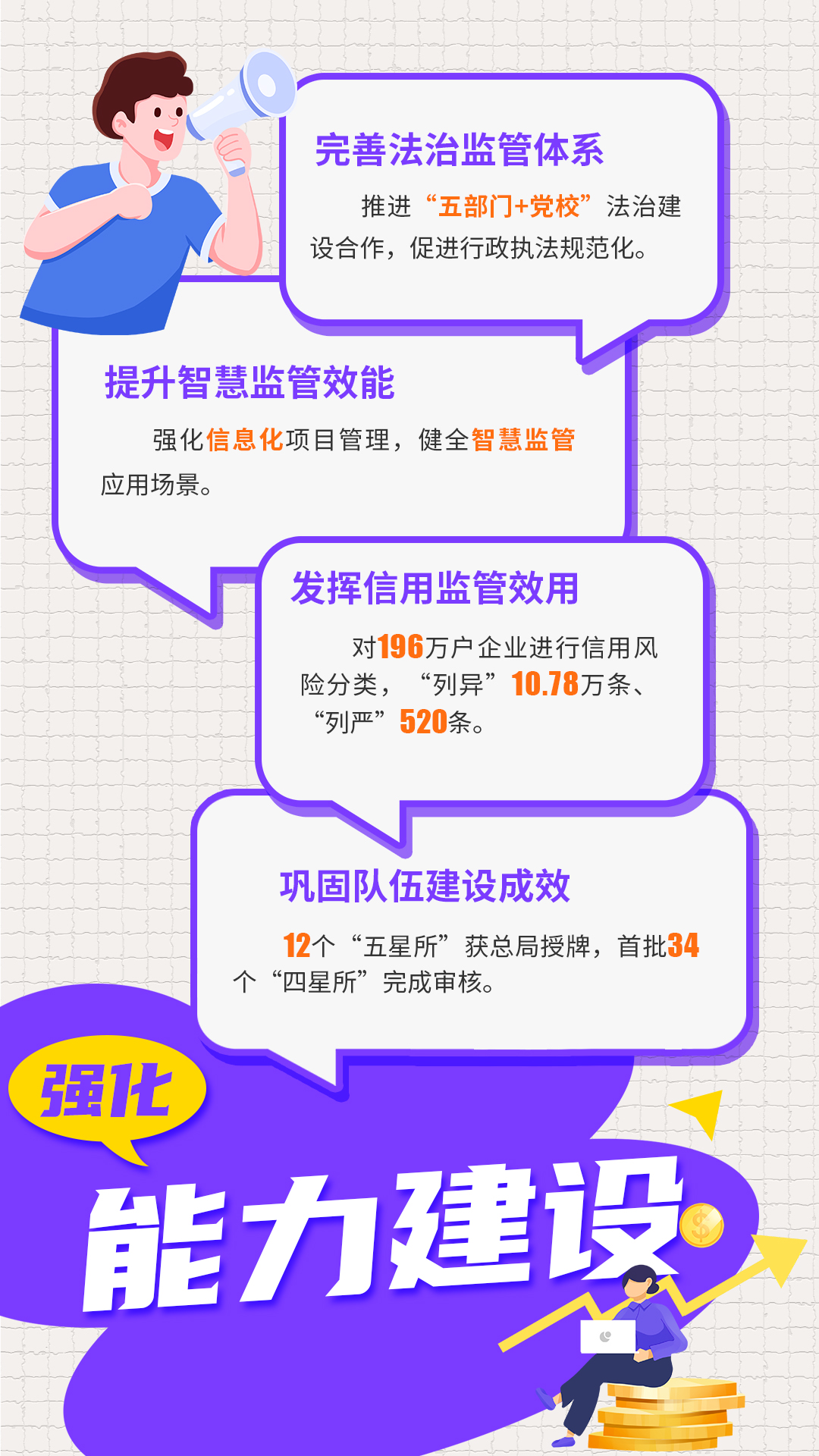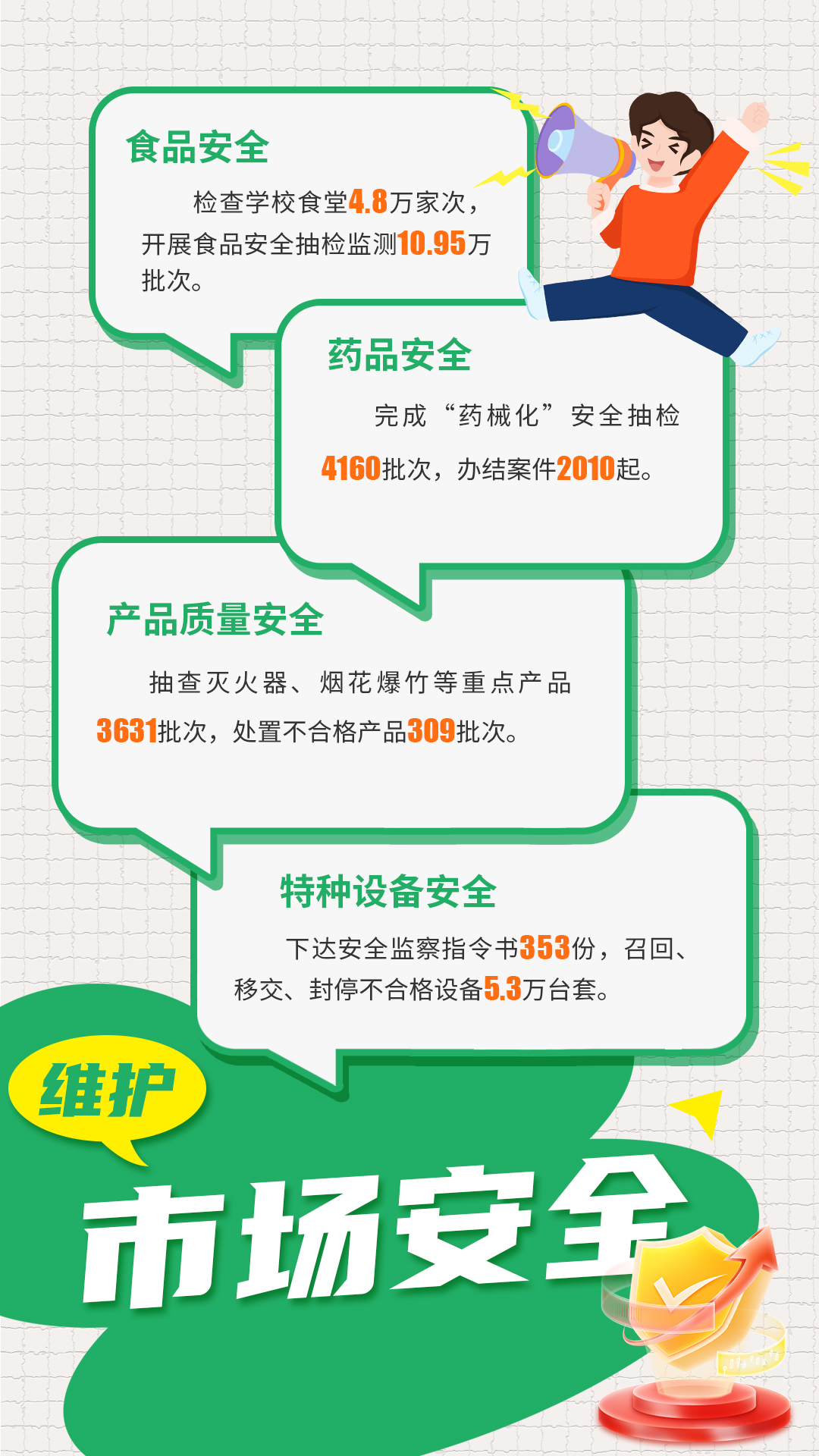 年初,湖南省市場監管局制定“123456”工作思路,堅持講政治、強監管、促發展、保安全,以高水平監管服務高質量發展。 2024年過半,打開湖南市場監管上半年工作報告,有哪些要點亮點值得關注?一組海報帶你速覽關鍵數據。