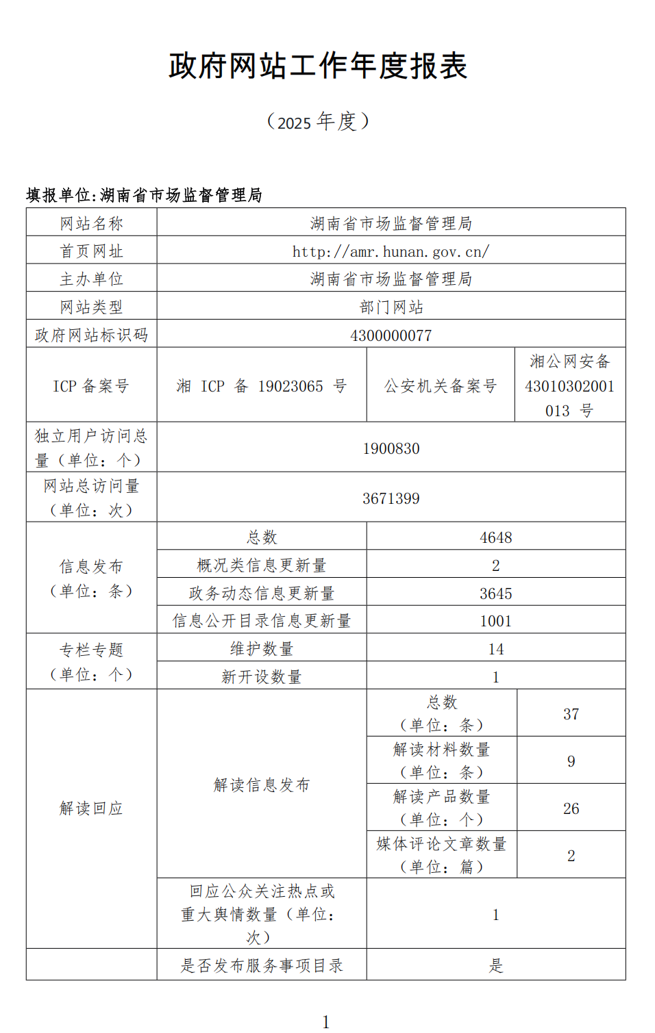 - 名稱: 湖南省市場監督管理局網站工作2025年度報表